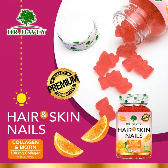 这款 DR.DAVEY 软糖每瓶 60 粒,含有 100 毫克胶原蛋白和生物素,是一款纯素膳食补充剂。配方旨在促进肌肤健康,改善头发状况(令秀发更浓密、更有光泽),强健指甲,并提亮肤色。橙子口味的软糖方便每日服用,轻松补充肌肤所需营养,焕发美丽光彩。