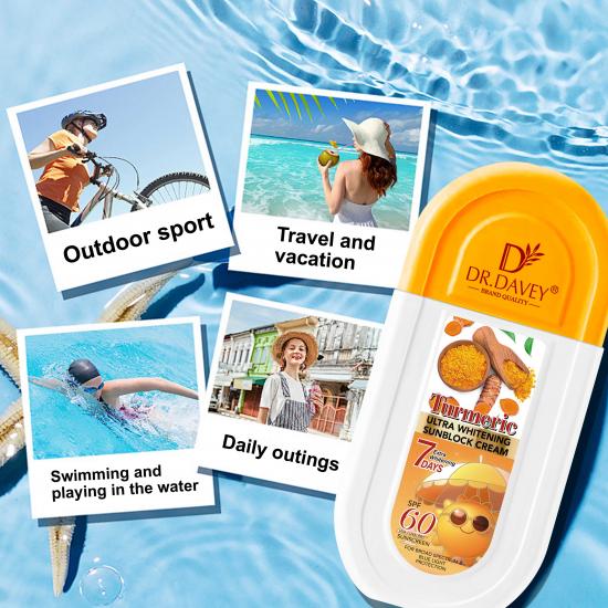 这款防晒霜结合了SPF 60广谱防晒功效和姜黄美白成分(宣称7天即可见效)。它防水防汗,即使在60°的阳光下或水上运动中也能有效防护,质地轻盈透明(不黏腻)。适合户外运动、旅行和日常出行,可保护肌肤免受紫外线照射引起的晒伤、肤色暗沉和老化。
