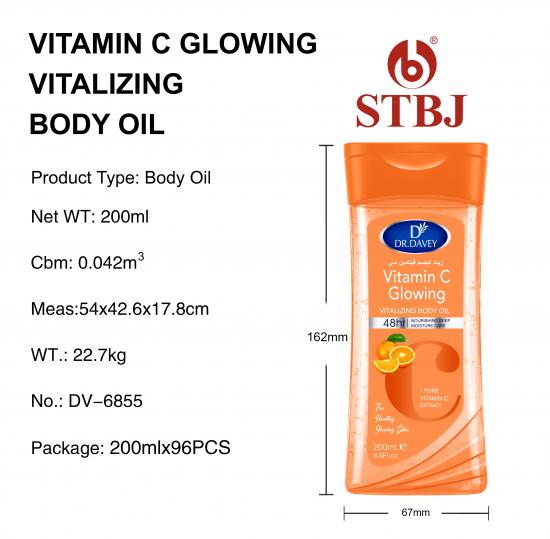 身体皮肤问题还在困扰 你? 维生素C保湿油会保湿你的身体皮肤,让你保湿身体,平滑皮肤。 私人标签的完美 OEM / ODM 自从 1993 准备好股票从 144官 可以 销售。 私人标签只有100 00pcs,与我们联系获得最佳价格。