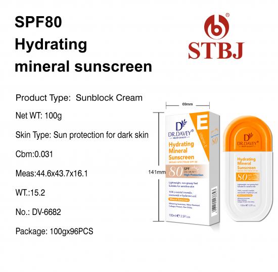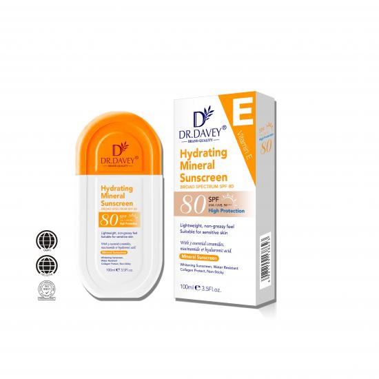 这款来自 DR.DAVEY 的高倍矿物防晒霜(SPF 80)专为抵御强烈的紫外线(例如,烈日暴晒)而设计。其配方融合了维生素 E 和透明质酸,在防晒的同时滋润肌肤,因此也适合敏感肌肤。轻盈不油腻的质地确保舒适感——即使化妆或接触水/汗水后也依然如此——适用于各种场合(旅行、户外活动、日常使用)。此外,它还具有美白和保护胶原蛋白的功效,在防晒的同时兼顾护肤。