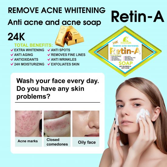 这款 ROUSHUN 香皂(货号 RS-30896)蕴含维A酸和 24K 成分,专为改善痤疮、油性肌肤和瑕疵而设计。它能清洁油脂、去除粉刺/螨虫、淡化痘印,并具有抗衰老功效(减少细纹、去除角质)。这款香皂具有 24 小时保湿和美白效果,超过 97.2% 的测试者表示痤疮红肿有所减轻。适合每日面部/身体使用,旨在令肌肤洁净、细腻、焕发活力。
