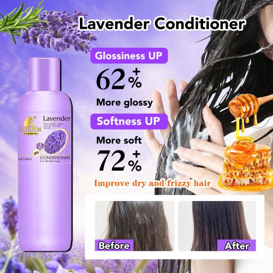 这款 ROUSHUN 两件套(500毫升洗发水 + 500毫升护发素)蕴含薰衣草和蜂蜜的混合成分,适用于所有发质。洗发水能够控油、去除头皮屑,令秀发轻盈蓬松,同时改善分叉。护发素则能提升秀发光泽度62%,柔软度72%,有效改善干枯毛躁的发质。两者结合,温和清洁并滋养秀发,令秀发更浓密、柔顺、健康。