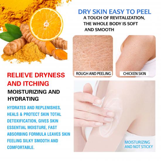 这款身体乳(蕴含姜黄和维生素C)专为干燥、脱皮和鸡皮肌肤设计:它能缓解干燥和瘙痒,提供24小时保湿,并将粗糙暗沉的肌肤变得柔软、亮泽、透亮。其快速吸收、不粘腻的配方还能改善足部皱纹和裂纹——7天即可见效。